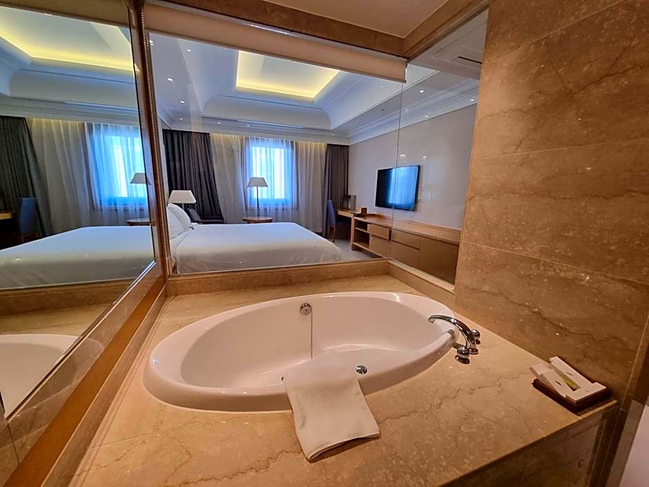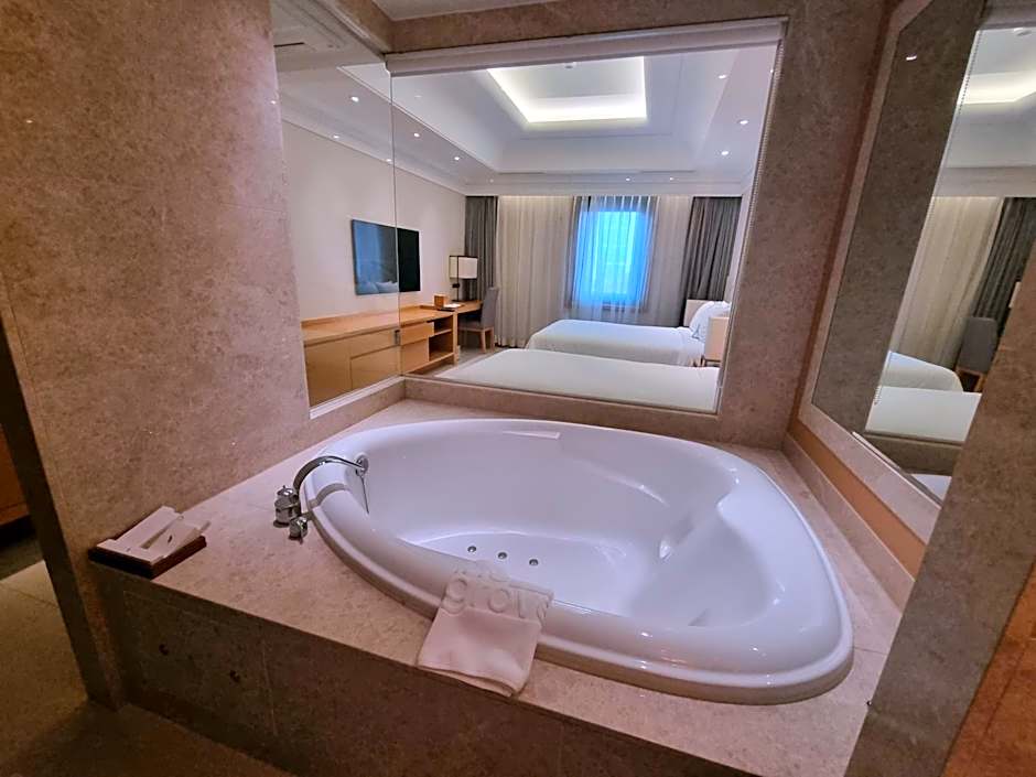 This twin room's standout feature is the hot tub. Offering free toiletries and bathrobes, this twin room includes a private bathroom with a bath, a shower and a bidet. The spacious air-conditioned twin room offers a flat-screen TV with cable channels, soundproof walls, a tea and coffee maker, a wardrobe as well as city views. The unit offers 2 beds.